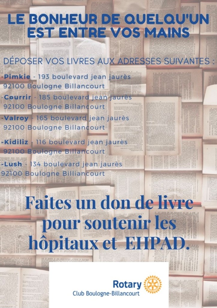 Une collecte de livres est organisée pendant la période du 8 mars au 15 avril 2021. Les points de collecte sont indiquées ci-dessous: