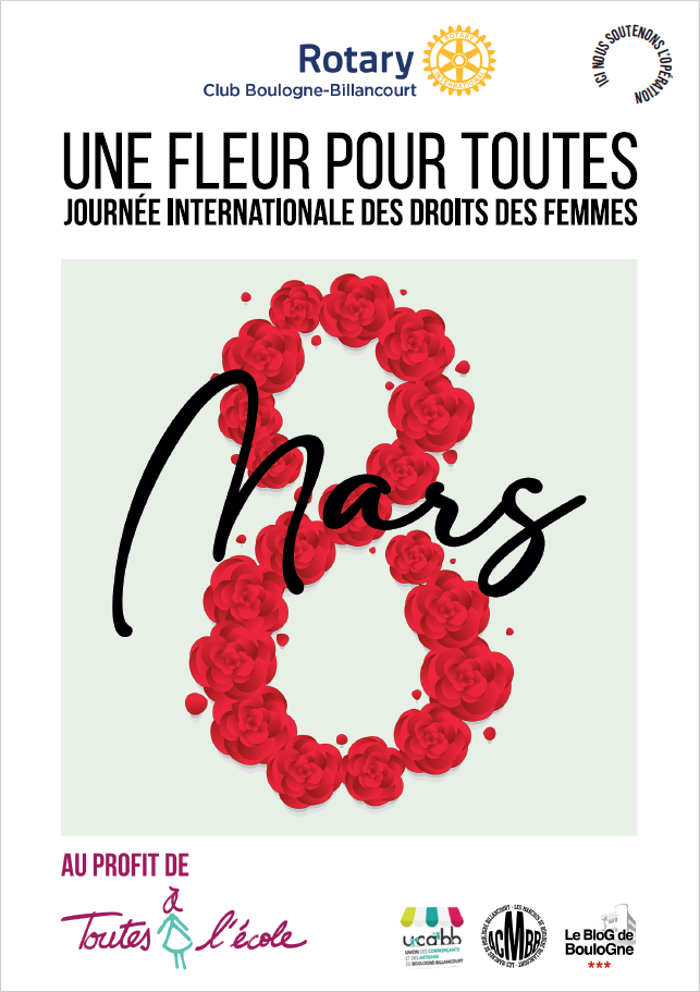 Vendredi 8 mars 2024 : Une Fleur Pour Toutes au profit de l’association Toutes à l’Ecole Posted by rotarybb92 on February 16, 2024February 16, 2024 Share this: Share on X (Opens in new window) X Share on Facebook (Opens in new window) Facebook Like Loading... Related