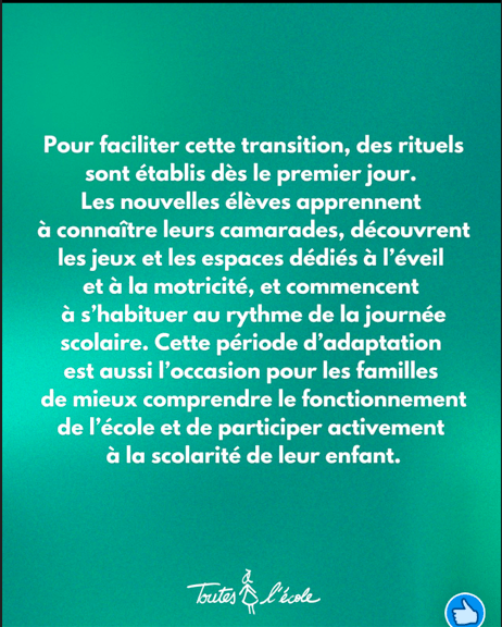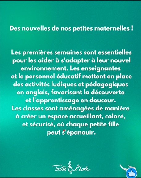 Chaque mois de septembre, cent nouvelles petites filles de 5-6 ans font leur rentrée en maternelle (équivalent de GS).